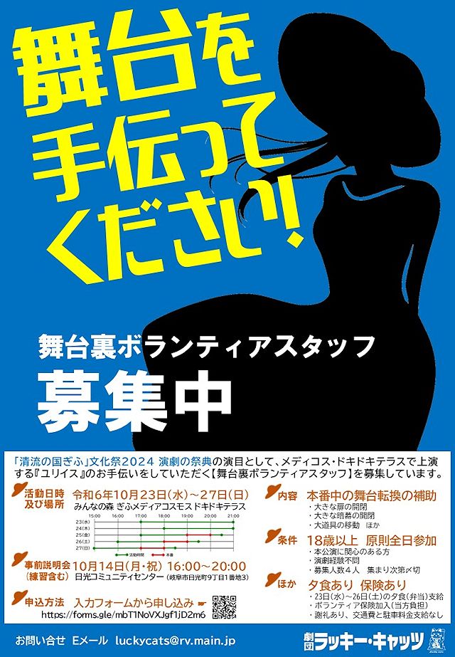 「清流の国ぎふ」文化祭2024演劇の祭典参加公演 Vol.49『ユリイス』ボランティアスタッフ募集